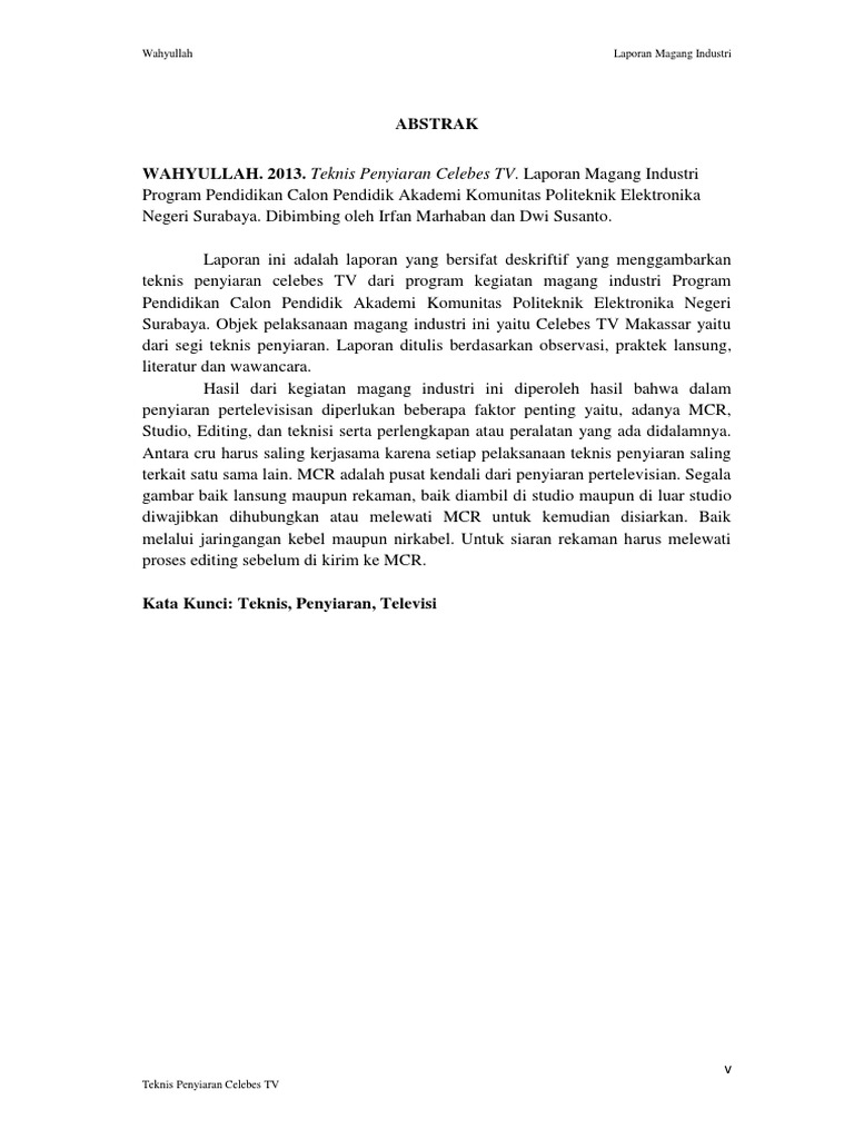 Laporan akhir latihan industri hariz dzulhafiz bin abdul manap. Reflective journal and industrial training report. Khas kepada pelajar politeknik malaysia yang sedang menjalani latihan industri.full description. Kertas kerja ini membentangkan perubahan signifikan dalam aspek penilaian. 10 contoh abstrak laporan kkn (kuliah kerja nyata).