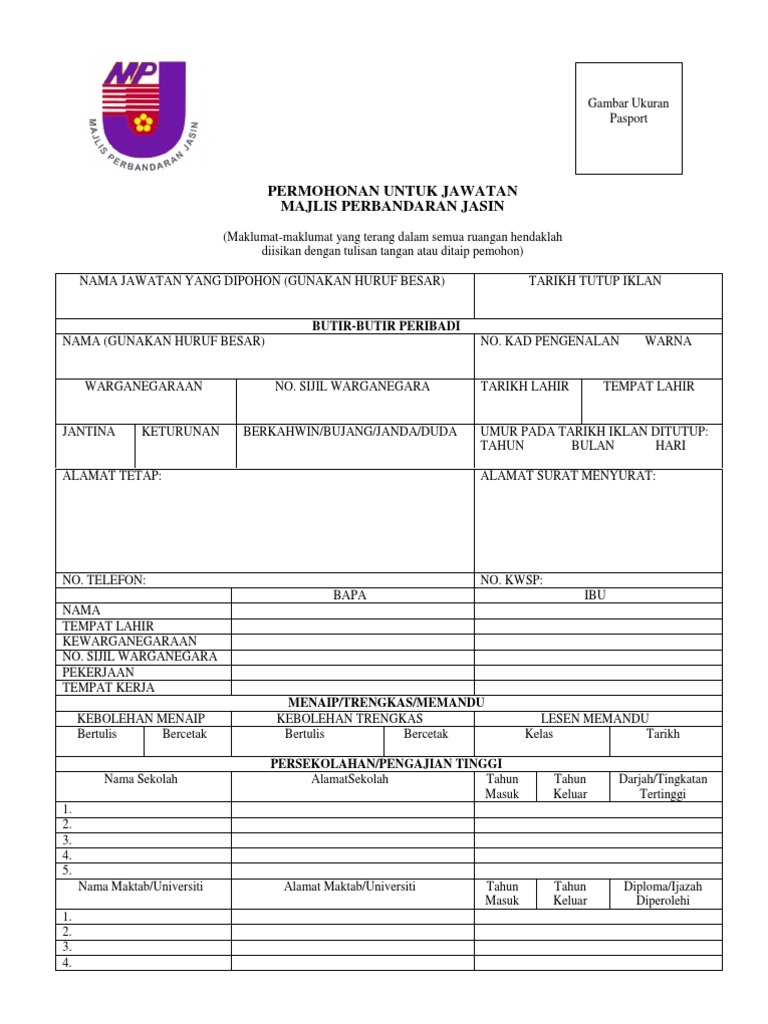 Permohonan ini ditujukan kepada warganegara malaysia untuk mengisi kekosongan kerja kosong majlis perbadaran kulai terkini.