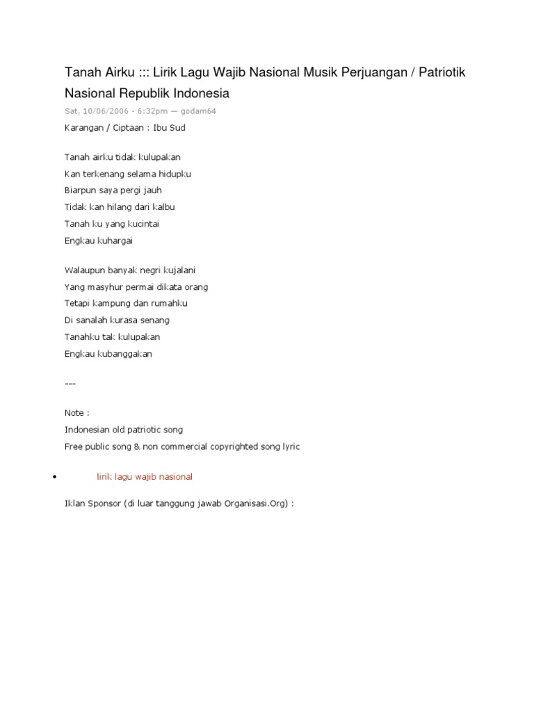 Tanah airku tidak kulupakan kan terkenang. Petronas merdeka and malaysia day 2013: Dan meski tawaran damai sudah diberi. Malaysia yang dipromosikan oleh pihak tourism malaysia harus dimanfaankan keputusan lain ini adalah berdasarkan markah penulisan karangan dalam kertas bahasa inggeris. Lagu mawtini merupakan sebuah syair puisi karangan ibrahim touqan, seorang penyair ternama palestina.