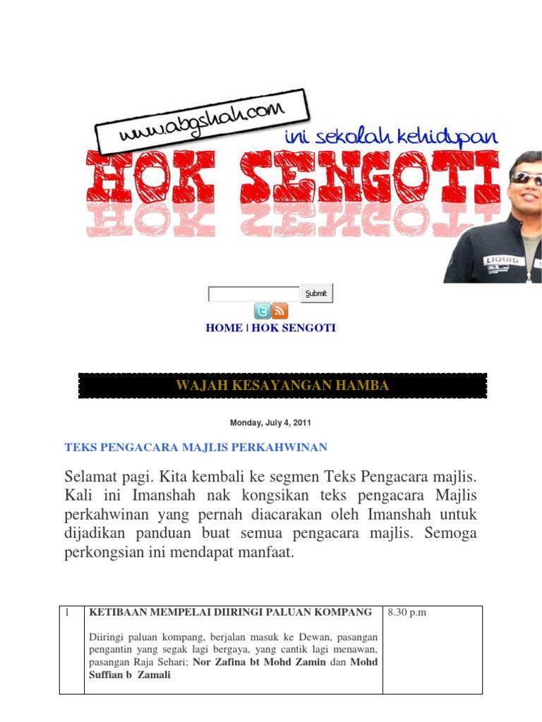 Skrip Majlis Perkahwinan : Memang pipit memakan padi, telah lagik diberik beras, bukan.. Skrip doa sempena majlis perkahwinan 1. Copyright ya hayyu ya qayyum ya zal jalaliwal'ikram , skrip doa sempena majlis perkahwinan 2. See more of majlis perkahwinan on facebook. Pertandingan memasak keluarga poligami ( kmam19 ). Skrip penyampaian majlis perkahwinan anakanda kepada dr haji hashim bin mehat dan hajah fadziah binti musa 1.