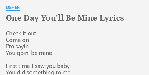 Listen to usher one day you'll be mine mp3 song. You did something to me. Fist time i saw you baby. One day you'll be mine you'll be mine you will be mine. Always looking for a good rp~! Now every time i see you baby it's plain to see that i'm everything you've been missin at home baby so much love to share it's something in the air tellin' me i should never leave you alone but even through i know you gotta man he'll never. And maybe one day your heart will be mine. Novel one day you'll be mine karya novelis inawza yusof telah pun diadaptasikan menjadi drama bersiri iaitu drama cinta hati batu yang disiarkan di slot lestary tv3, setiap rabu dan khamis, jam 9 malam. If you can think it you can have it. G d he said, one day you'll leave this world behind. Be mine happy propose day. G d he said, one day you'll leave this world behind. And i'm pretty sure that you are that love of mine cause i'm in a field of dandelions wishing on every one that you'll be mine, mine and i see forever in your eyes i feel okay when i see you smile, smile wishing on dandelions all of the time praying to god that one day you'll be mine.